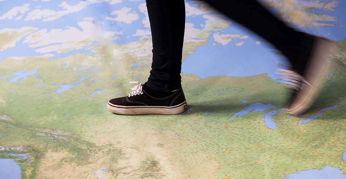 We certainly do. The giant world map locr produced in cooperation with EFI (nearly) makes it possible! The locr team already set foot on all 5 continents. In this photo, North Amerika is crossed with two steps through Michigan and Ohio and the border region between the US and Canada. On 7.5 x 5 metres, it’s easy to check on the next holiday destination or travel route – which is not making the decision easier.